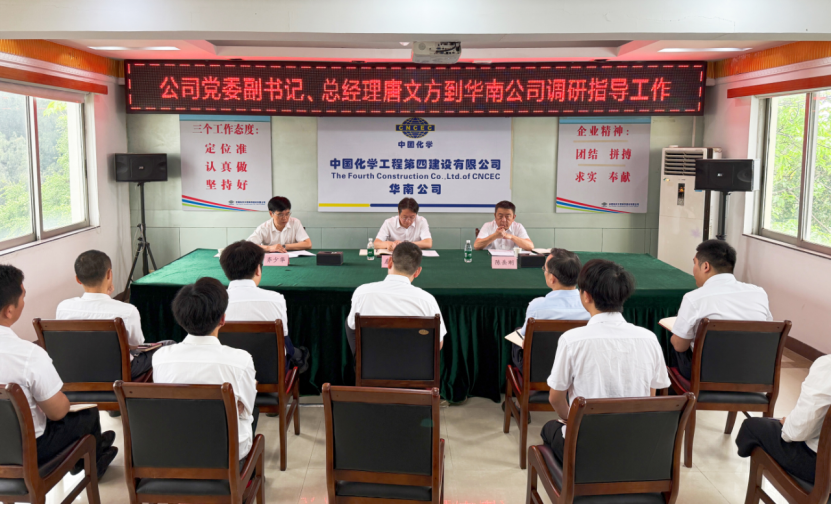 在華南公司調研期間,唐文方聽取了分公司相關工作匯報,對分公司各項工作取得的成績表示肯定,并就下一步工作提出六點要求:一是要解放思想,強化廣東、福建等華南區域市場和東南亞海外市場開發力度,加大與系統內外工程公司合作,實現石油化工與精細化工等領域多元化發展。二是要加強人才隊伍建設,深入推進專業化建設步伐,著力優化分公司各類注冊證書資格人員結構,強管齊抓提升人才隊伍素質。三是要深化精益管理提升,以現場保市場,打造本質安全、質量上乘、管理精益、效益良好、綠色環保的精品工程,提升市場競爭力。四是要狠抓“兩金”壓降,貫徹“開工即結算”理念,加強項目進度結算和過程收款管理,做好“兩清”工作。五是要筑牢安全環保防線,壓緊壓實安全環保管理責任,持續抓好安全環保督察整改,確保安全生產形勢持續平穩。六是要抓好黨建工作,推動黨建與生產經營深度融合,以高質量黨建引領保障分公司高質量發展。