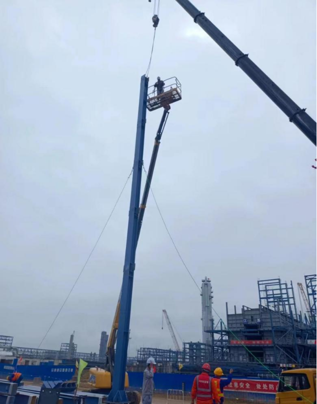 此次吊裝難度大,最大塔高度49米,穿衣戴帽后最大重量195噸。為組織好這兩臺塔器的吊裝工作,項目施工人員對設(shè)備吊裝過程的每一步“精打細(xì)算”,吊裝嚴(yán)格按照方案執(zhí)行并進(jìn)行技術(shù)交底。吊裝期間,項目主要管理人員堅守現(xiàn)場,對設(shè)備吊裝情況實時監(jiān)督,直至塔器順利安裝就位。此次吊裝,獲得監(jiān)理業(yè)主一致認(rèn)可,為后續(xù)施工打下了堅實基礎(chǔ)。