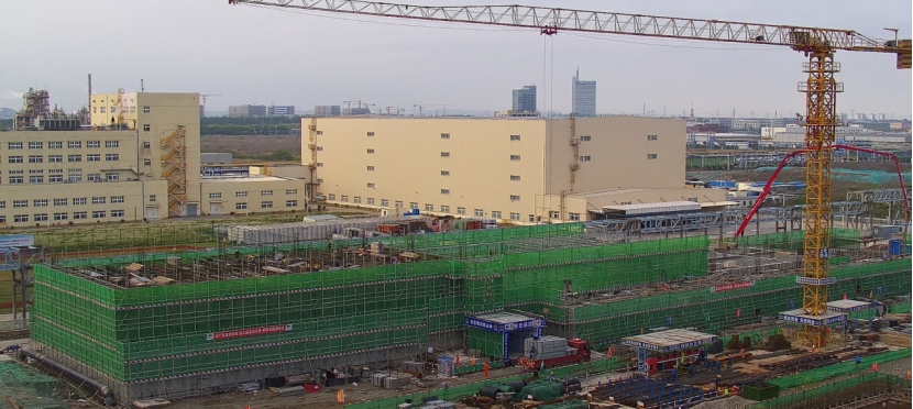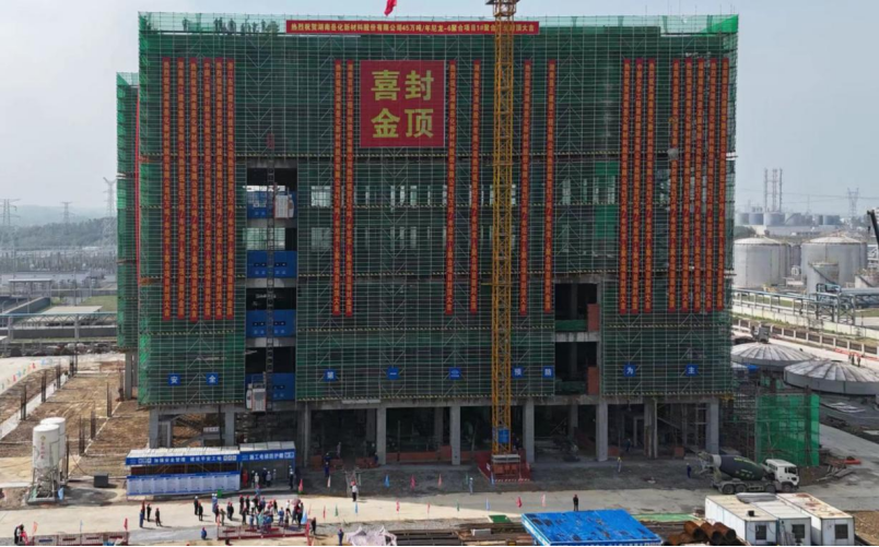 中化勞務(wù)公司岳化新材料項(xiàng)目主裝置聚合廠房封頂